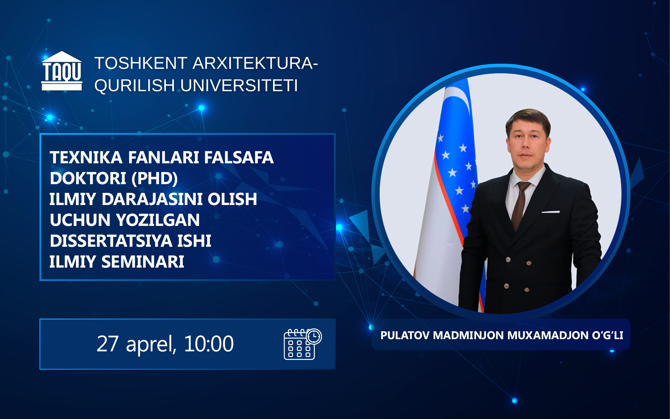 Pulatov Madminjon Muxamadjon o‘g‘lining texnika fanlari falsafa doktori (PhD) dissertatsiya ishi ilmiy kengash ilmiy seminari to‘g‘risida