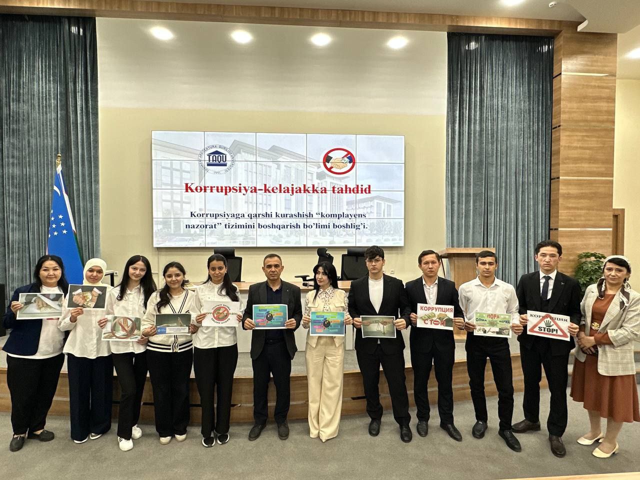 Toshkent arxitektura-qurilish universiteti Arxitektura fakultetida Korrupsiyaga qarshi kurashish “komplaens-nazorat” tizimini boshqarish bo‘limi boshlig‘i M.Isakdjanov tomonidan talabalar bilan “Korrupsiya – kelajakga tahdid” mavzusida davra suhbati boʻlib oʻtdi.Suhbat davomida korrupsiyaning jamiyat rivojiga salbiy ta’siri, uning ta’lim tizimidagi oqibatlari va har bir yoshning halol va mas’uliyatli bo‘lishi muhimligi ta’kidlab o‘tildi. Ta’kidlanishicha, korrupsiya nafaqat shaxsiy rivojlanishga, balki kelajakdagi kasbiy obro‘ va ishonchga ham jiddiy xavf soladi.Ayniqsa, bo‘lajak arxitektorlar uchun halollik, adolat va mas’uliyat — har bir loyihaning poydevori hisoblanadi. Agar bu tamoyillar buzilsa, qurilgan inshoot emas, ishonch yemiriladi.Shu munosabat bilan u talabalarni bilimli, faol va halol bo‘lishga, hamda korrupsiyaning har qanday ko‘rinishiga murosasiz munosabatda bo‘lishga chaqirdi.Har bir talaba o‘z halolligi va adolatli faoliyati bilan korrupsiyasiz universitet muhitini yaratishga hissa qo‘shishi lozim!Shu bilan birga tadbir, ishtirokchilariga universitetda faoliyat yuritayotgan korrupsiyaga qarshi kurashish "komplaens-nazorat" tizimini boshqarish boʻlim toʻgʻrisida hamda korrupsiya va manfaatlar toʻqnashuviga oid ma'lumotlarni xabar berish tartibi boʻyicha aloqa kanallari batafsil tushtirib oʻtildi.Murojaat uchun ishonch kanallari:📌 https://t.me/taqu_corruption_bot🔗 Telegram manzili: Havola 📧 Elektron pochta: m.iskdjanov@taqu.uz📞 Ishonch telefoni: +998 55 508 03 14 Unutmang! Adolatli va shaffof ta’lim muhitini yaratish har birimizning burchimizdir. Birgalikda korrupsiyaga qarshi kurashib, halol va pok kelajak sari intilaylik!