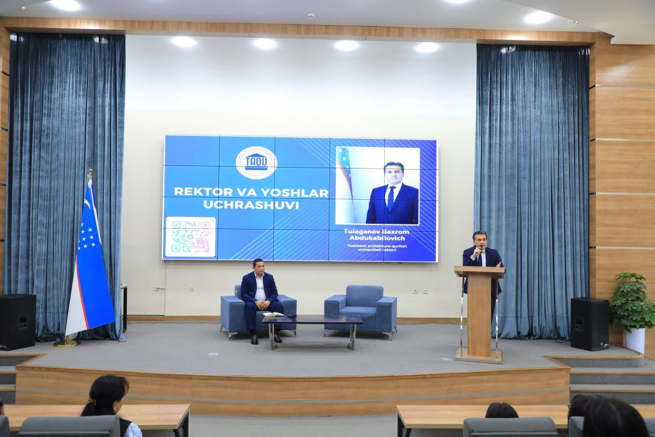 Toshkent arxitektura-qurilish universitetida an’anaviy tarzda o‘tkazib kelinayotgan “Rektor va yoshlar uchrashuvi” doirasida navbatdagi uchrashuv Menejment fakulteti talabalari bilan bo‘lib o‘tdi.Unda Yoshlar masalalari va ma'naviy-ma'rifiy ishlar prorektori S.Mardov, tyutorlar hamda talabalar ishtirok etdilar.Tadbirni universitet rektori Tulaganov Bahrom Abdukabilovich kirish so‘zi bilan ochib berdi. Ochiq muloqot tarzida oʻtgan uchrashuvda universitetda tahsil olayotgan talabalarga sifatli taʼlim olishi uchun yaratilgan shart-sharoitlar va imkoniyatlarni taʼkidlab oʻtildi hamda xalqaro hamkorlik, loyihalar va yangiliklar toʻgʻrisida maʼlumot berildi. Shuning bilan birga universitet ichki tartib qoidalari, odob-ahloq qoidalari haqida ham tushuntirish ishlari olib borildi. Tadbir yakunida talabalar o‘zlarini qiziqtirgan savollarga to‘laqonli javob oldilar.
